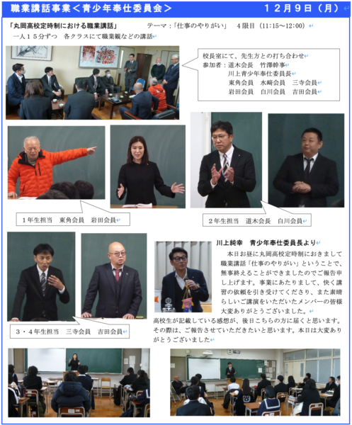 12/9 丸岡高校定時制にて「職業講話」を開催。